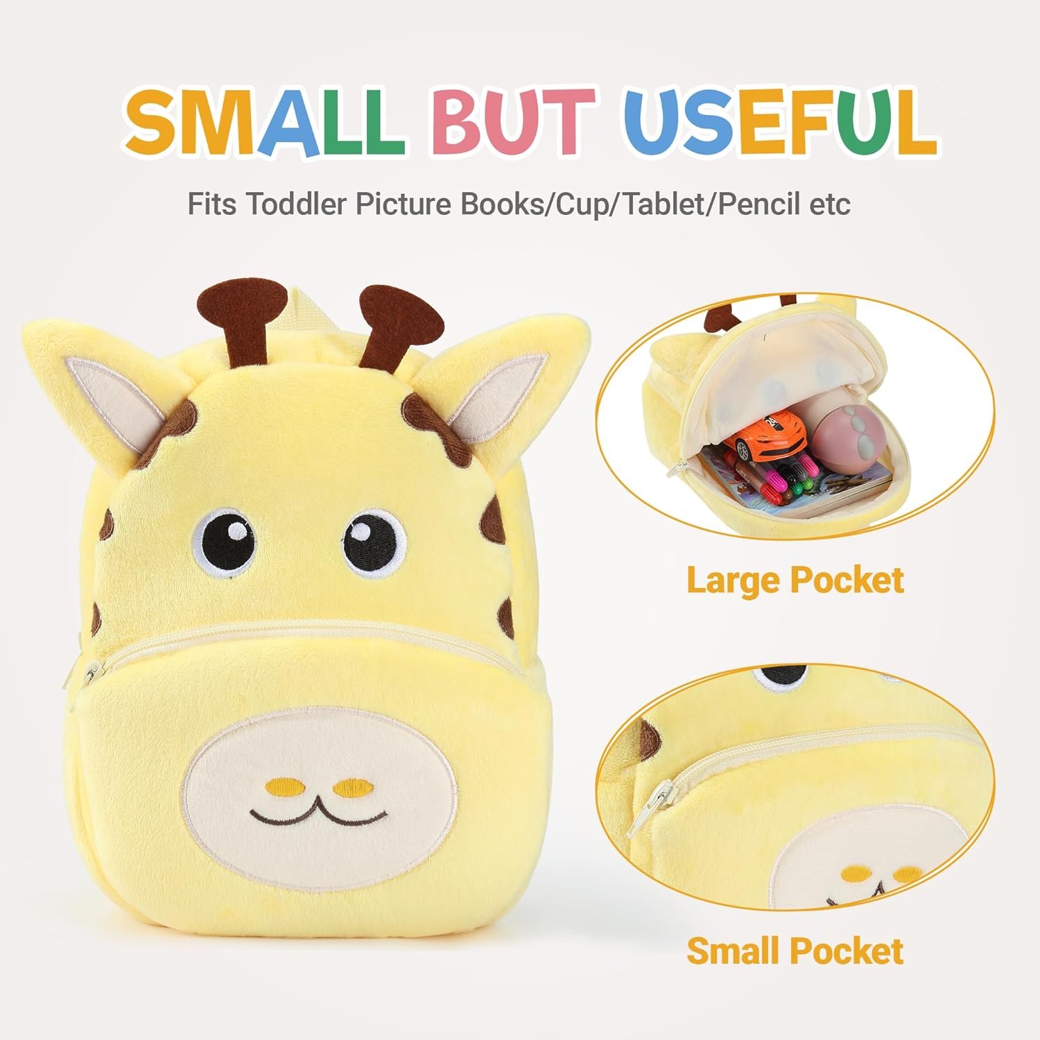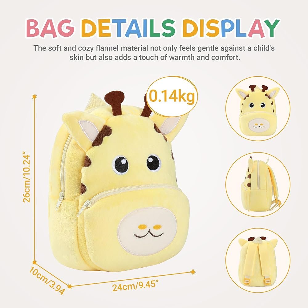A soft and lightweight plush backpack with a cute Giraffe design, perfect for toddlers and young kids.
