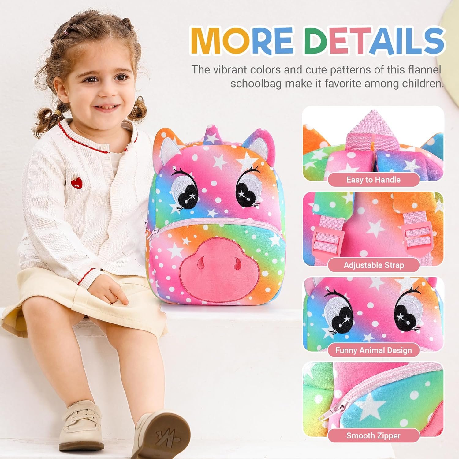 A soft and lightweight plush backpack with a cute Unicorn design, perfect for toddlers and young kids.